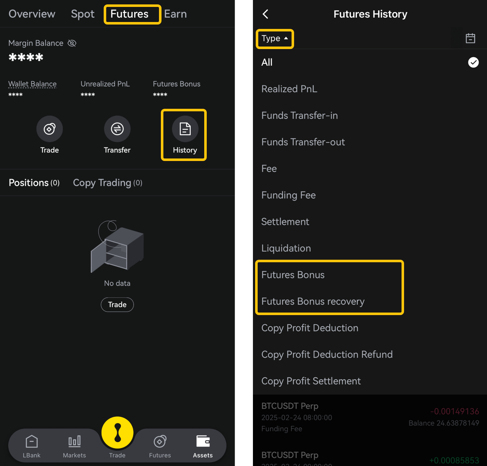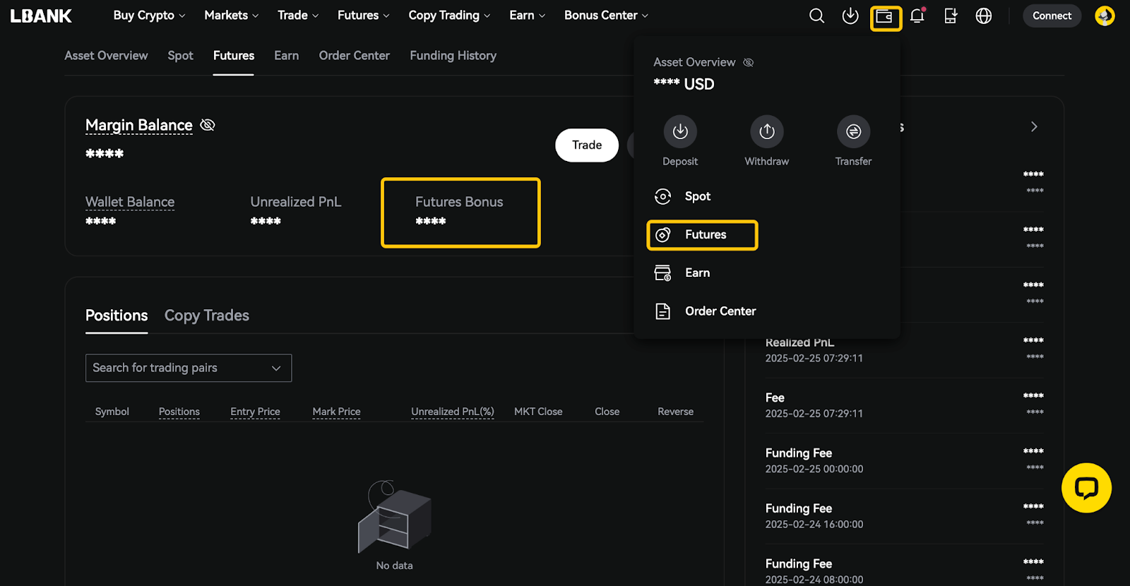 - يمكن استخدام مكافأة العقود الآجلة في هوامش التداول، والرسوم، ورسوم التمويل، والخسائر. وستعدلها LBank وفقًا لأنشطة مُحدّدة.