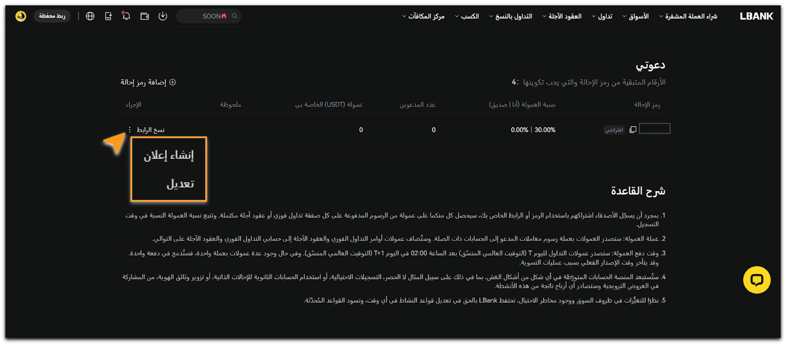 - أتريد الانضمام إلى برنامج المسوقين بالعمولة؟ انقر لمعرفة المزيد أو زُر 👈https://www.lbank.com/ar/affiliate-program