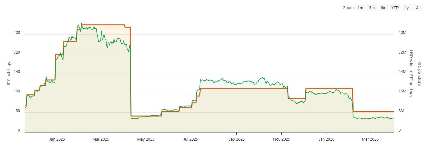 Genius Group held 84 BTC worth around $5.7 million as of March 2026, but holdings have declined since April 2025, around the time it was temporarily barred by a US court from expanding its Bitcoin treasury. It resumed buying in June of that year.