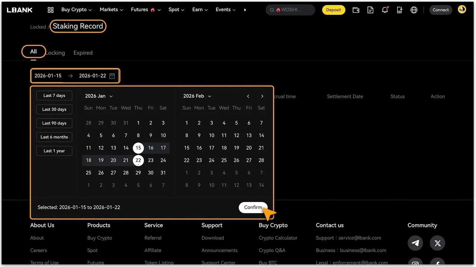 Inicia sesión en el sitio oficial de LBank; ve a 「Ganar > Bloqueado」 para explorar los productos disponibles.