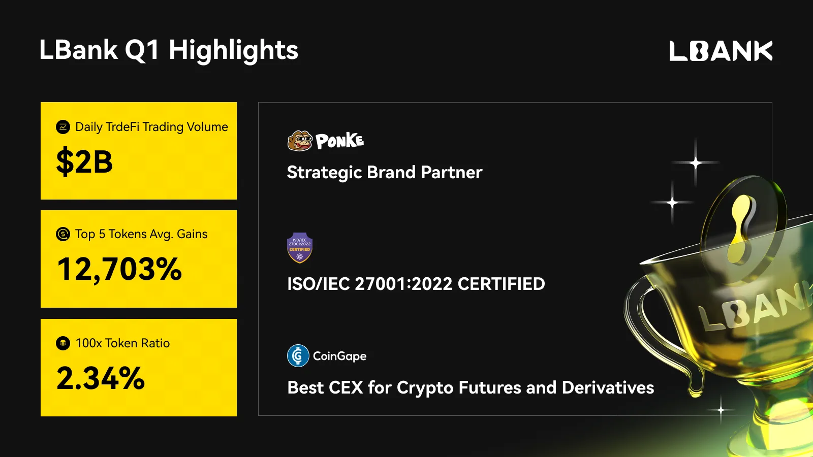 در سطح شناخت صنعت، LBank همچنین تأییدیههای معتبری دریافت کرده است. در 29 ژانویه، این پلتفرم جایزه «بهترین صرافی متمرکز برای قراردادهای آتی و مشتقات رمزنگاری» را از CoinGape دریافت کرد. این افتخار به طور کامل مزایای پیشروی LBank در نوآوری محصولات قراردادی، ساخت اکوسیستم مشتقات و تجربه معاملاتی کاربر را تأیید میکند و موقعیت و اعتبار برتر برند ما را در حوزه خدمات مالی رمزنگاری جهانی بیش از پیش مستحکم میسازد.