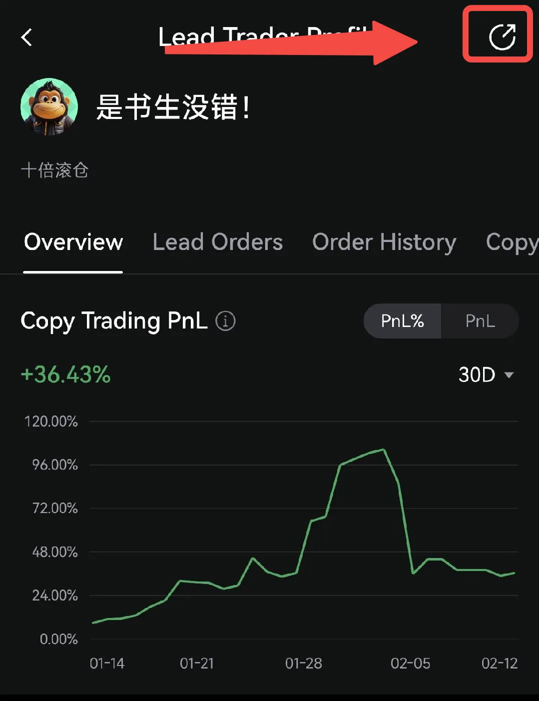 Kliknij dowolny przycisk udostępniania na stronie copy tradingu, aby jednym kliknięciem przesłać swój ekskluzywny krótki link polecający i szybko zaprosić znajomych do dołączenia.