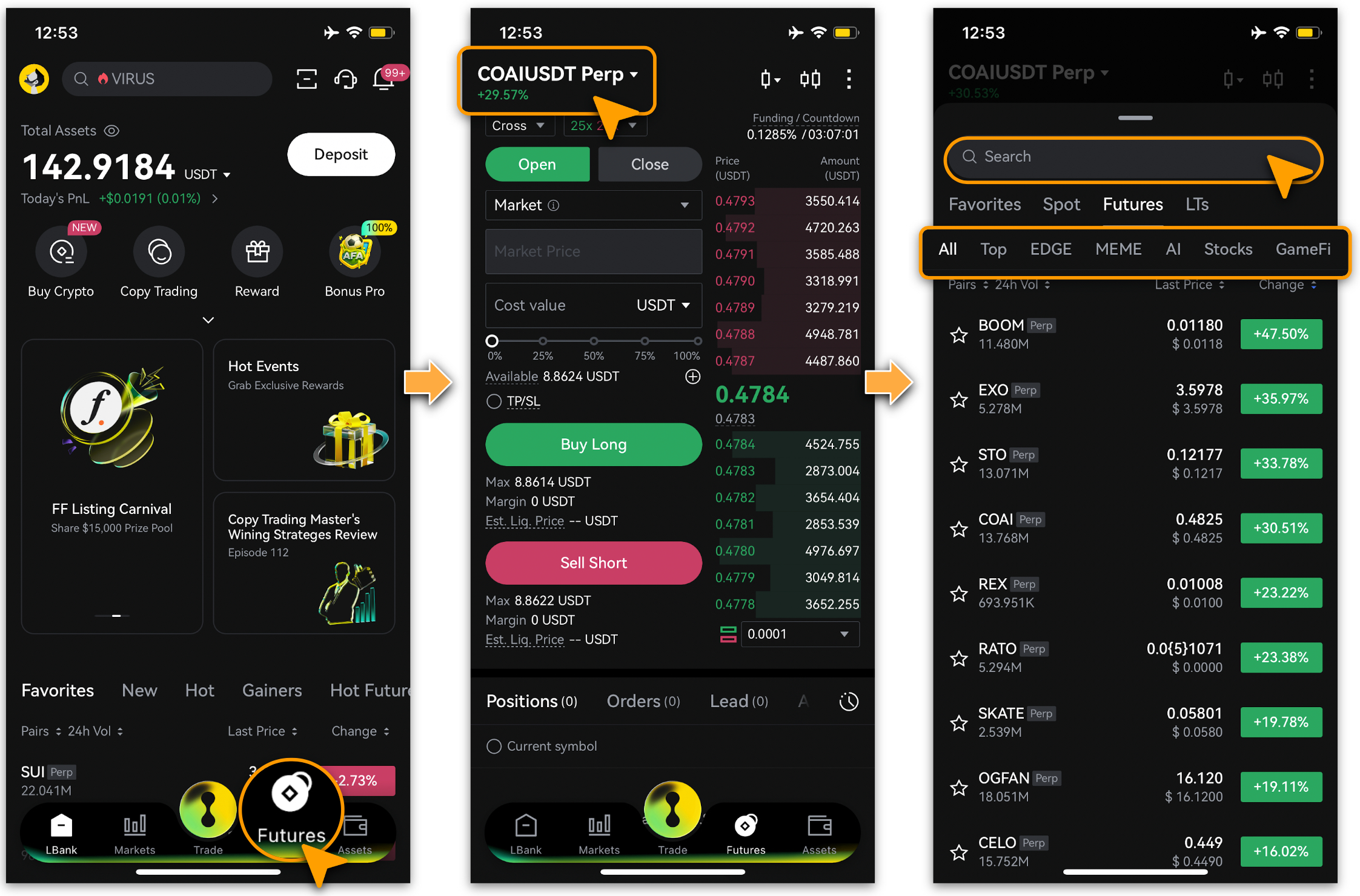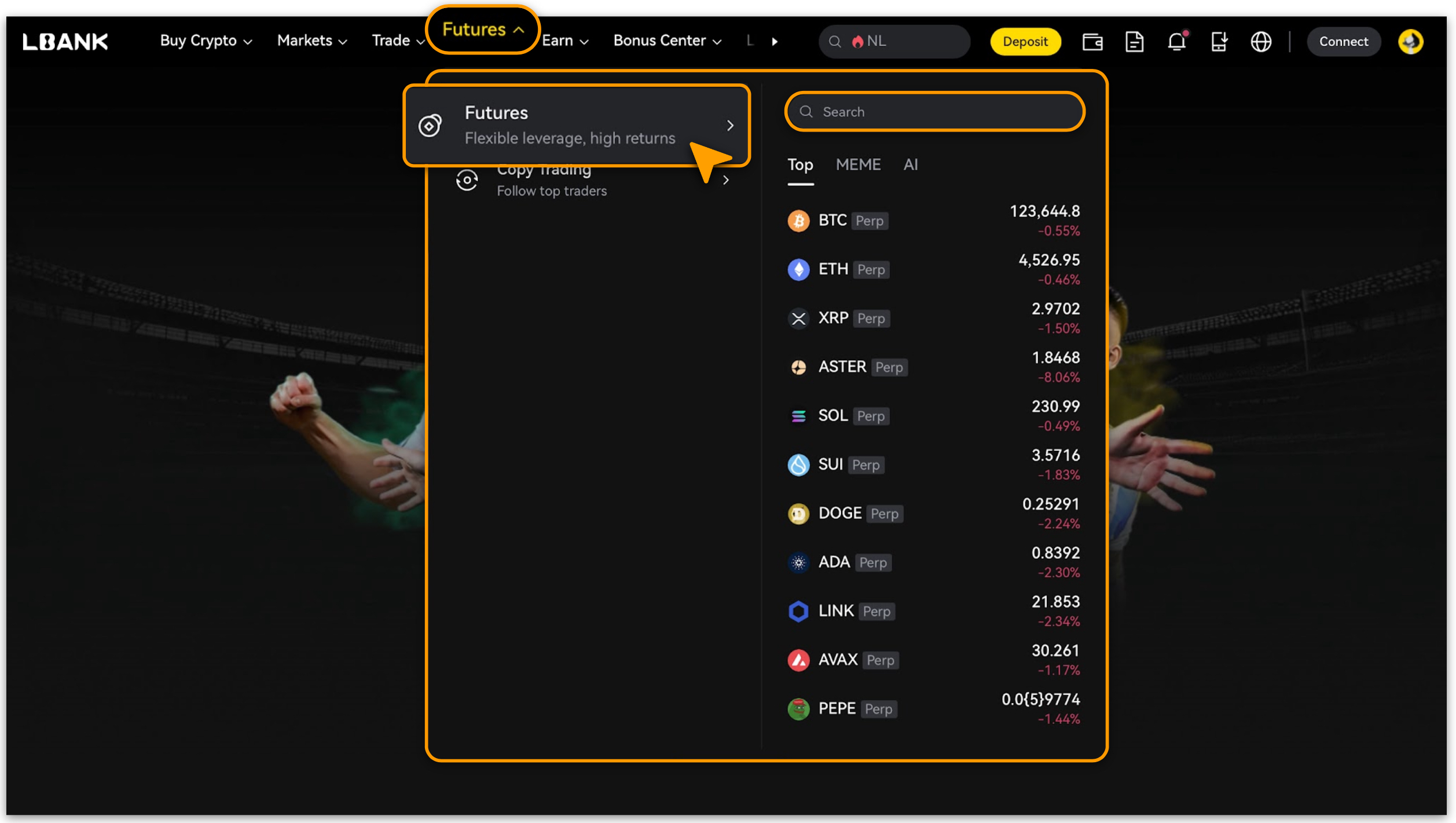 Enter Futures Trading: With your LBank account logged in, navigate to tap「Futures」.