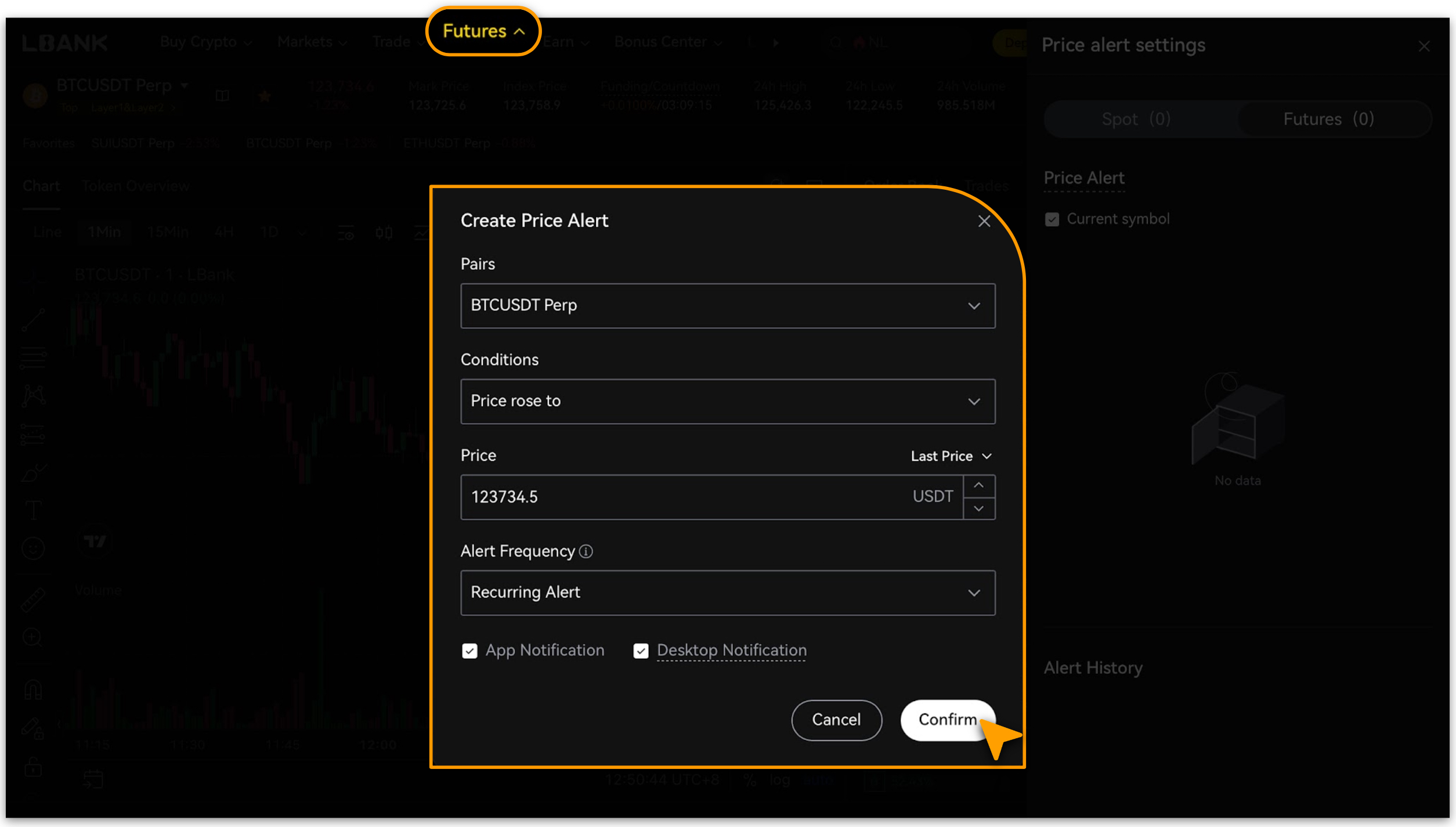 Integrate Analysis Tools: Combine with LBank’s K-line charts and market trend analysis for more accurate alert configurations.