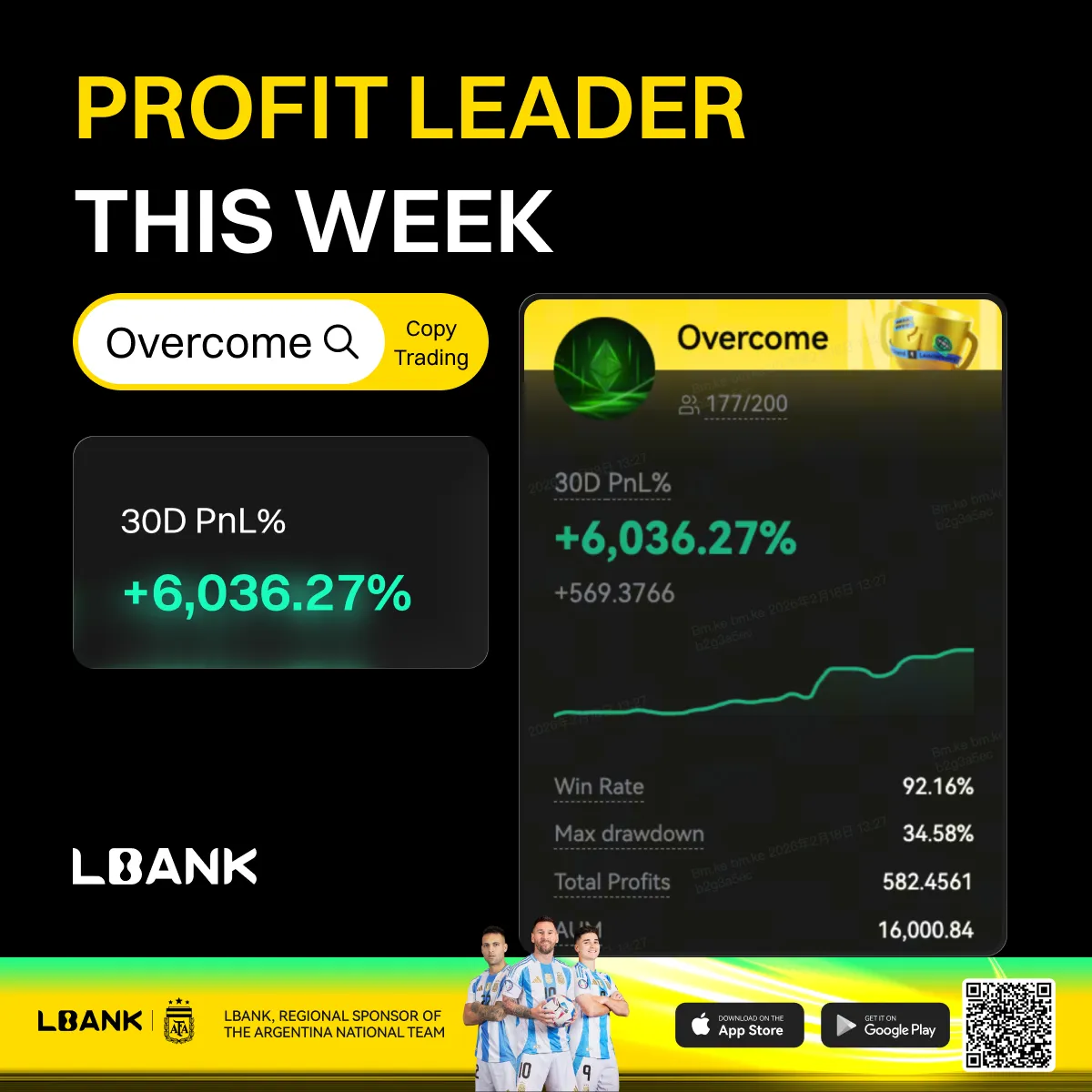 3.1 Meet our Star Traders of the week: "Overcome" has become the star trader of the week with 30D PnL% of +6036.27%! Easy Copy, Smart Trade! Start your copy trading journey now!