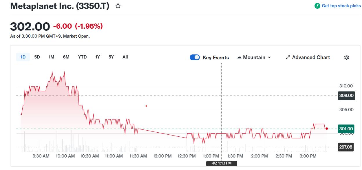 The company left its consolidated revenue and operating profit forecast for the year ending Dec. 31, 2026, unchanged from guidance issued on Jan. 26, 2026. Metaplanet shares traded lower on Thursday, at $302 per share, down 1.95% from $308 at yesterday’s close, even after the announcement, according to data from Yahoo! Finance.