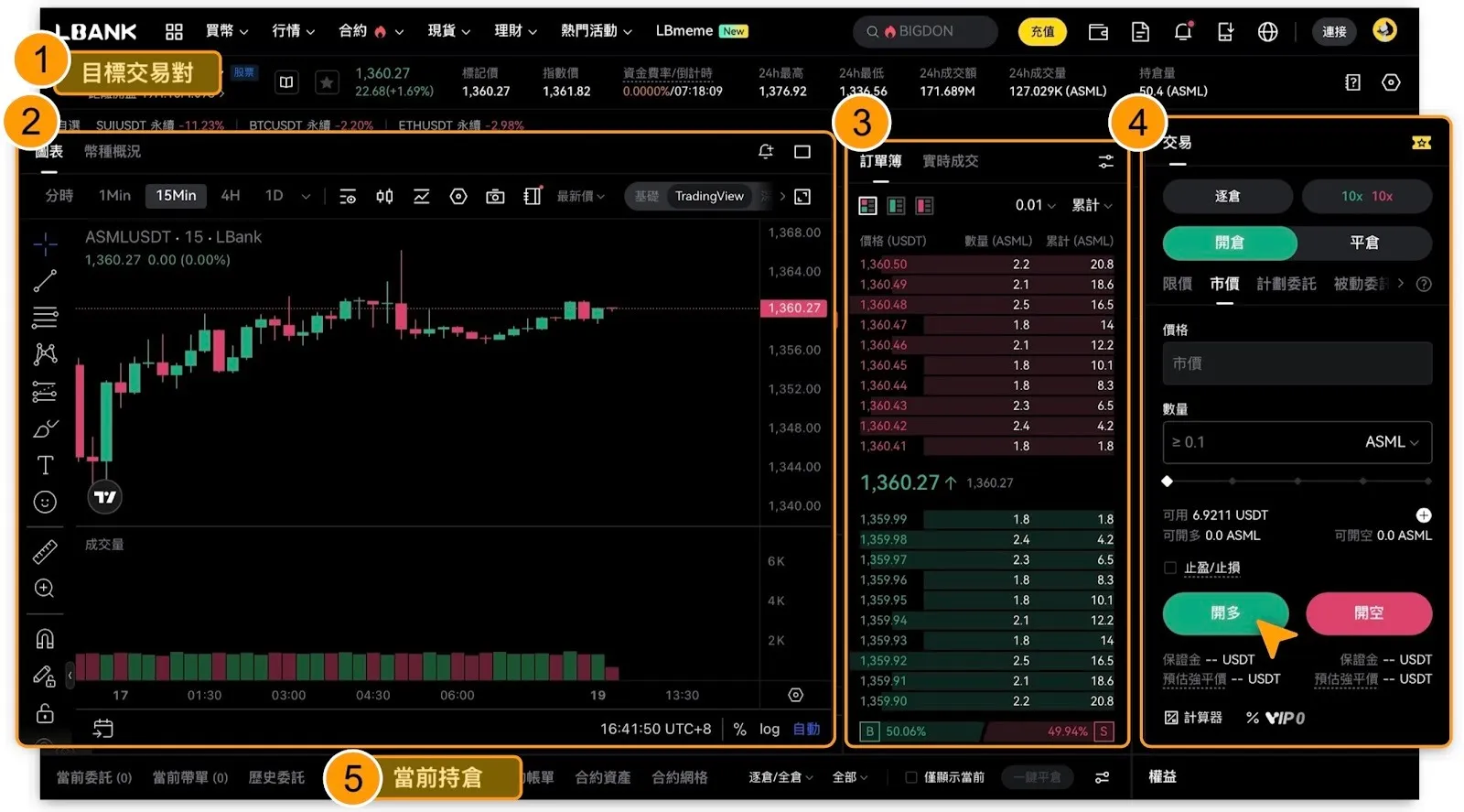 查看圖表:從圖表中,可多個維度查看該目標交易對詳情;