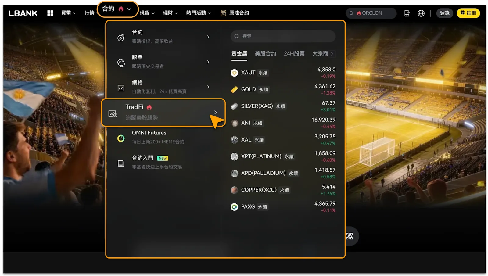 登入後,導航欄選擇「合約交易」>「TradFi資產」;